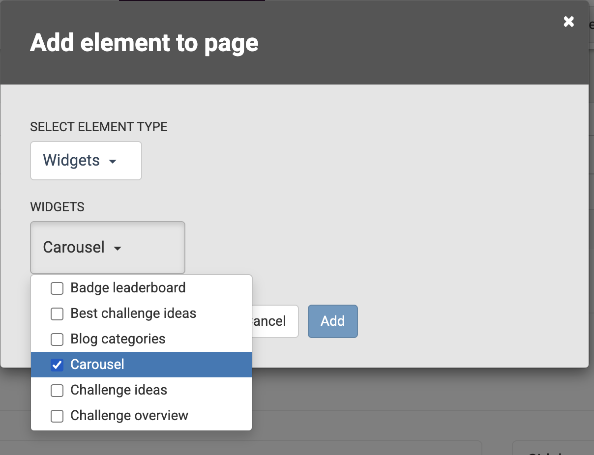 - Select the Element Type and choose the widgets that you want and click Add.