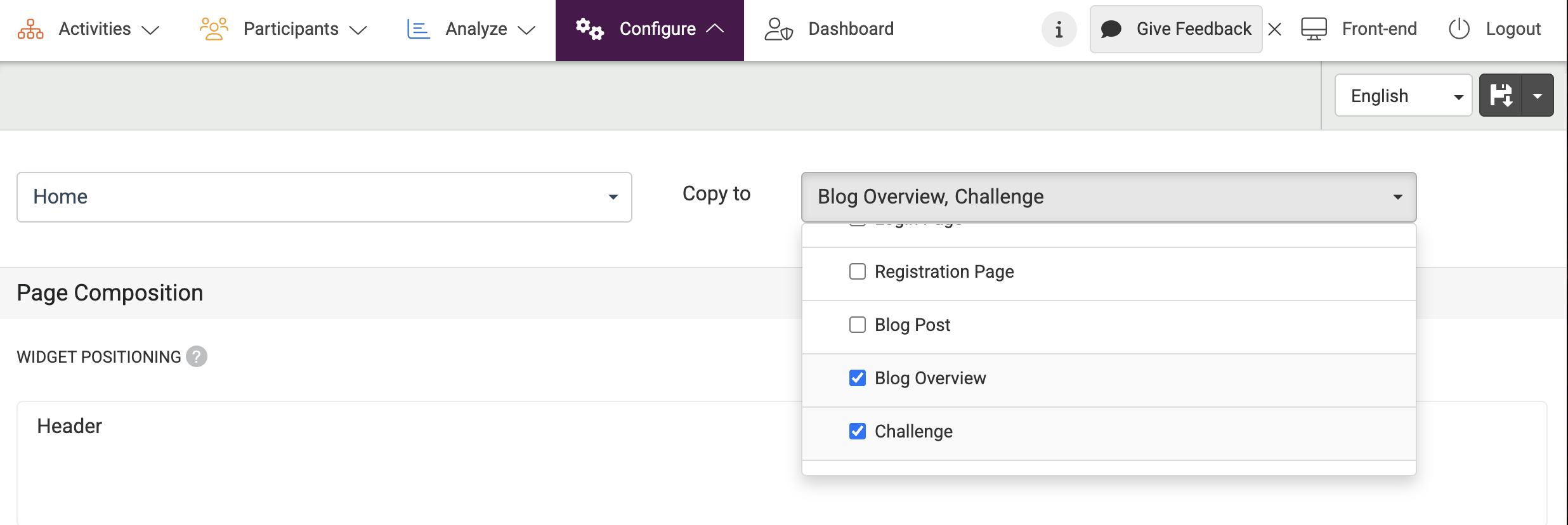 - Go to the Configure page at the top menu.