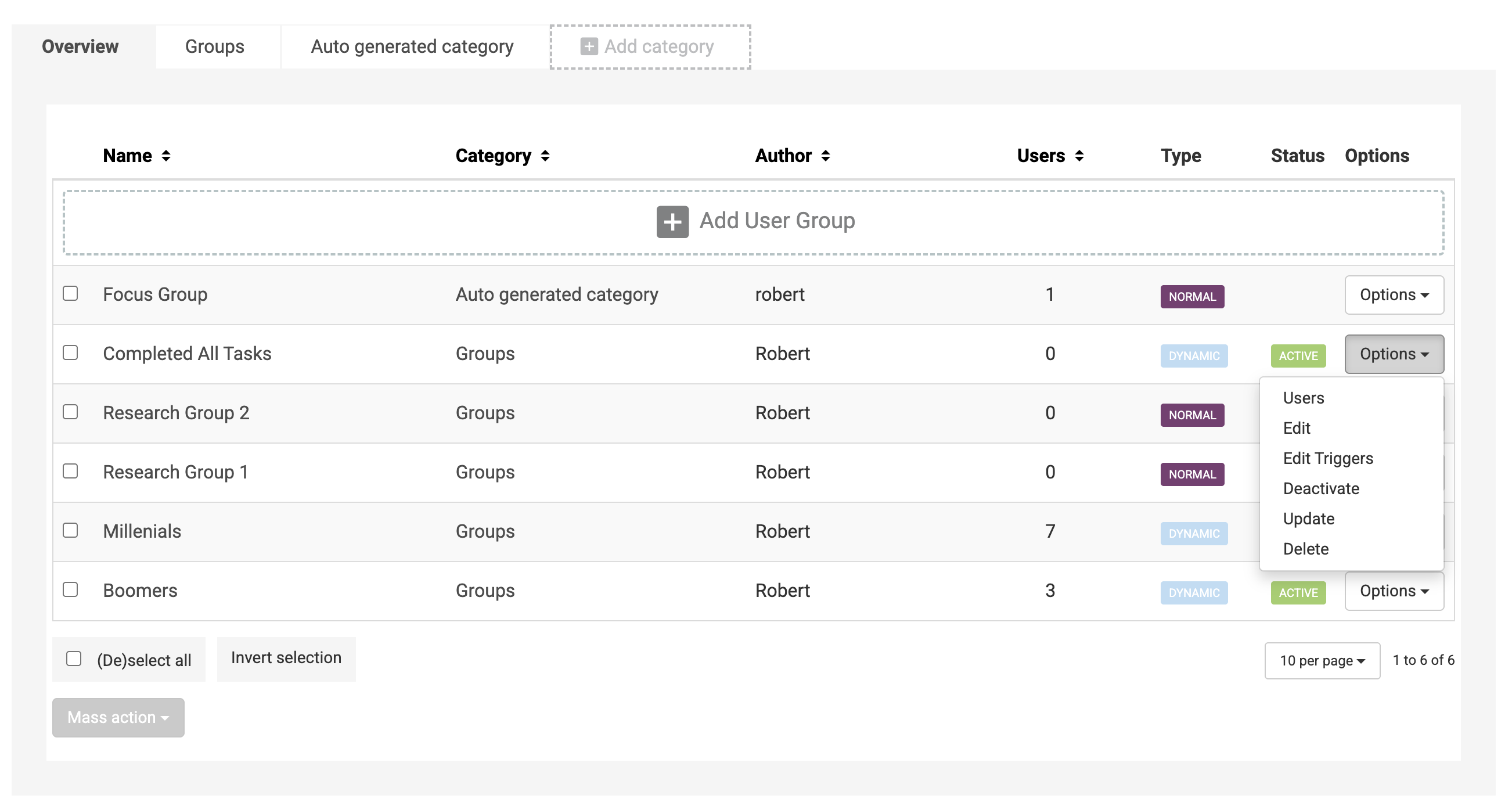 Dynamic groups will be automatically updated every few minutes when Auto Update is switched on for a dynamic user group. During updates, new members who meet criteria based on triggers you’ve set will be added and current members who no longer meet the criteria based on triggers you’ve set will be removed.
