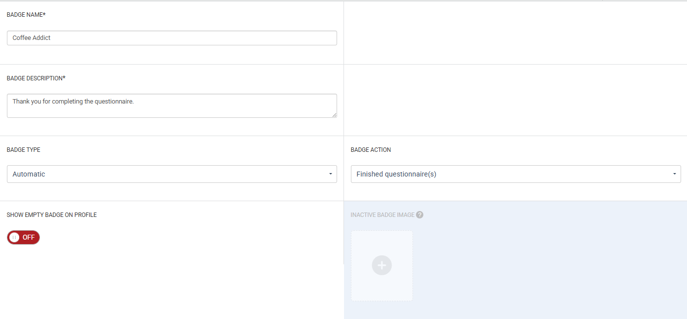 - You can choose to show the empty badge on a members profile, and show an Inactive Badge Image.