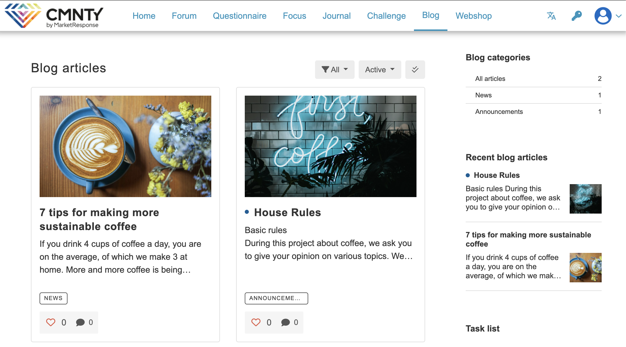 The Blog Categories widget shows all blog categories of The Blog Module. By clicking a category, you will be redirected to an overview page where all the blog articles in that category are shown.