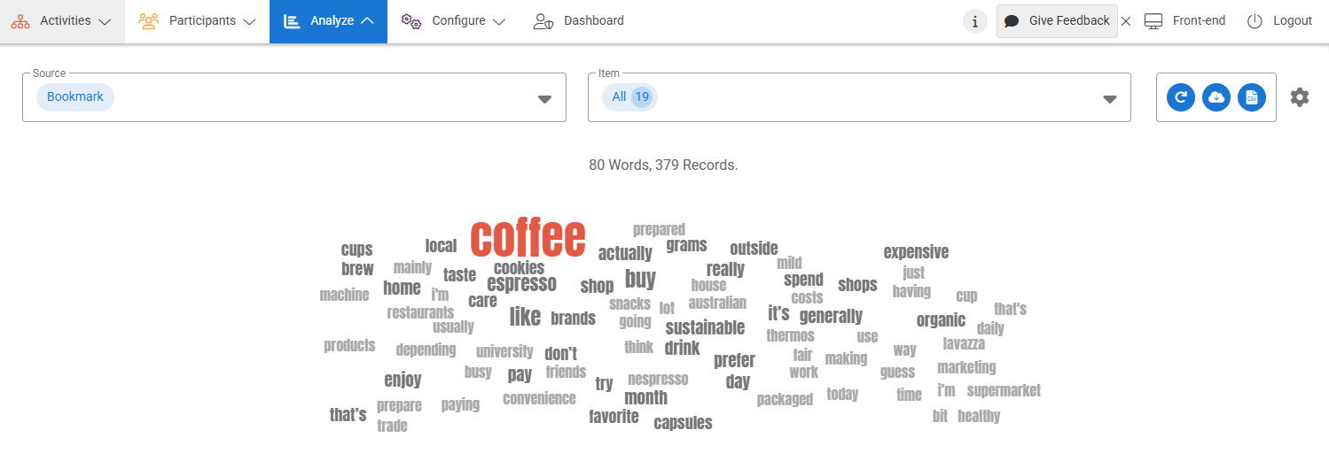 You can also receive a word cloud in Forum from a discussion topic. This word cloud will give you an overview of the most used words in that specific Forum discussion.