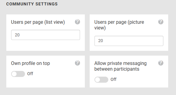 In the admin section, you can arrange the view of the community module. You can change the number of members per page and determine whether your own profile is always on top: