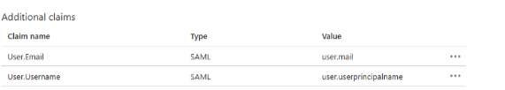 <saml:Attribute Name=”User.Email” NameFormat=”urn:oasis:names:tc:SAML:2.0:attrname-format:unspecified”>