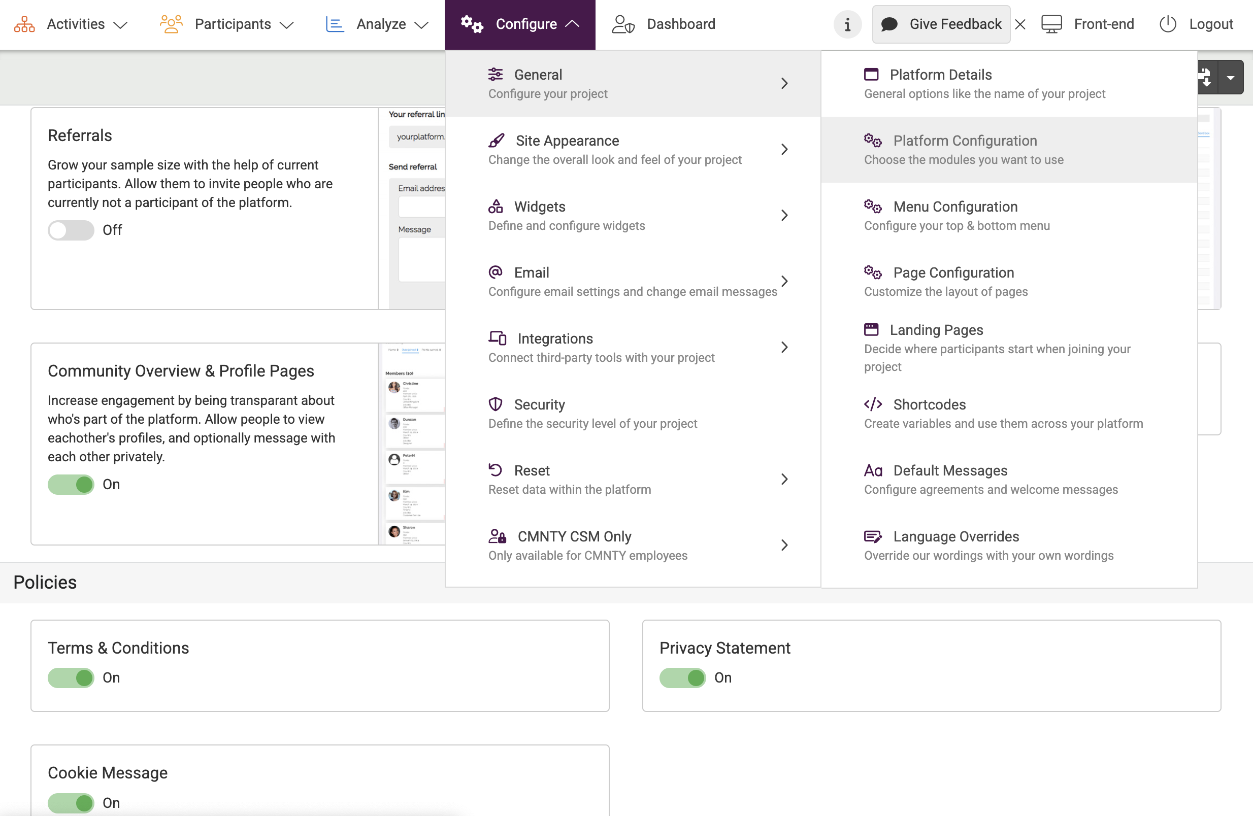 The European Union makes it mandatory for websites to ask for permission to add cookies on a users computer when visiting a website. The cookie message only appears for people accessing the platform from within the EU. In the platform settings you can decide if you want this message to be shown or not by following the steps below: