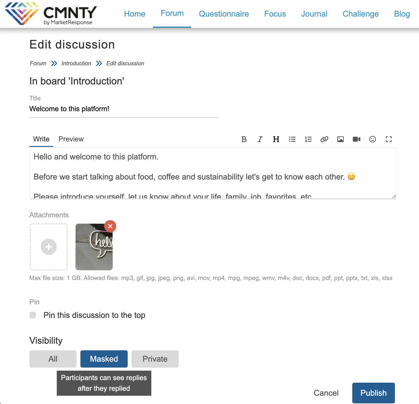 - Fill in the title and your message and decide if you want your topic to be closed, pinned, private or masked.