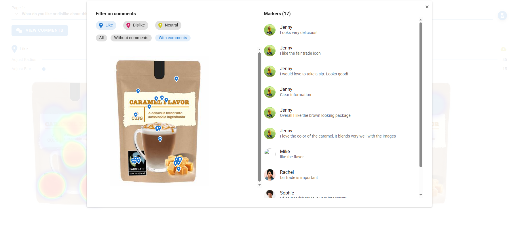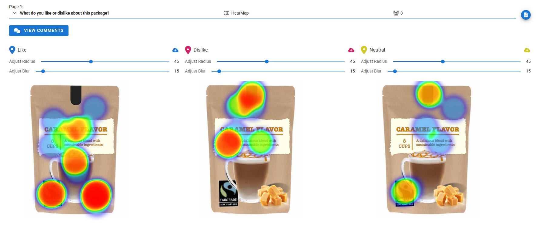Use HeatMap for product concept testing and point-of-sale goods where shelf placement, webshop design, branding and packaging impacts a buyer’s decision. Allow people to place Positive and Negative markers with comments on any image. Understand what people like or dislike and where they focus their attention on.