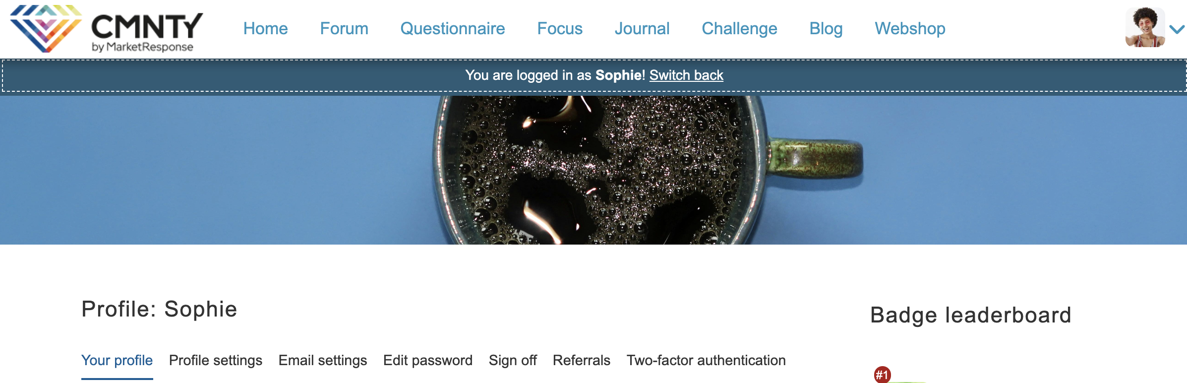 Once you have logged in as a user, you will see everything in the platform in exactly the same way the user sees the platform. Please be aware that you don’t add any content before you switch back to your own account. To switch back to your own account, press the Switch Back button at the top of the page.