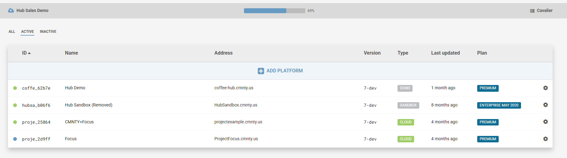 Creating a new platform is really easy, if you want you can prepare your platform on the demo platform. Please check Hub platform creation, to see how you can create a new platform.