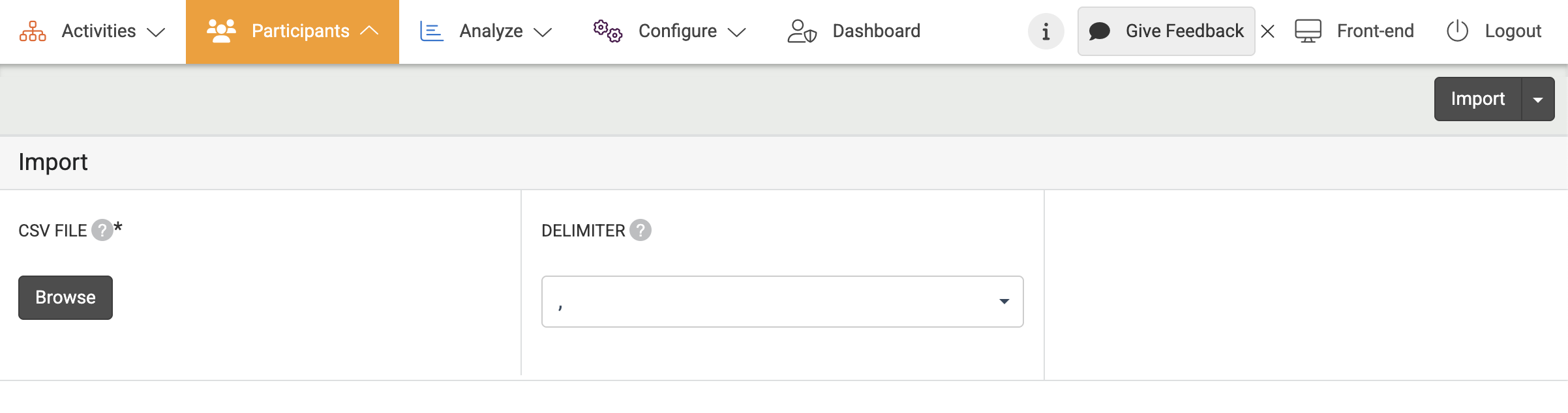 - Underneath Users, click Import at the left menu.