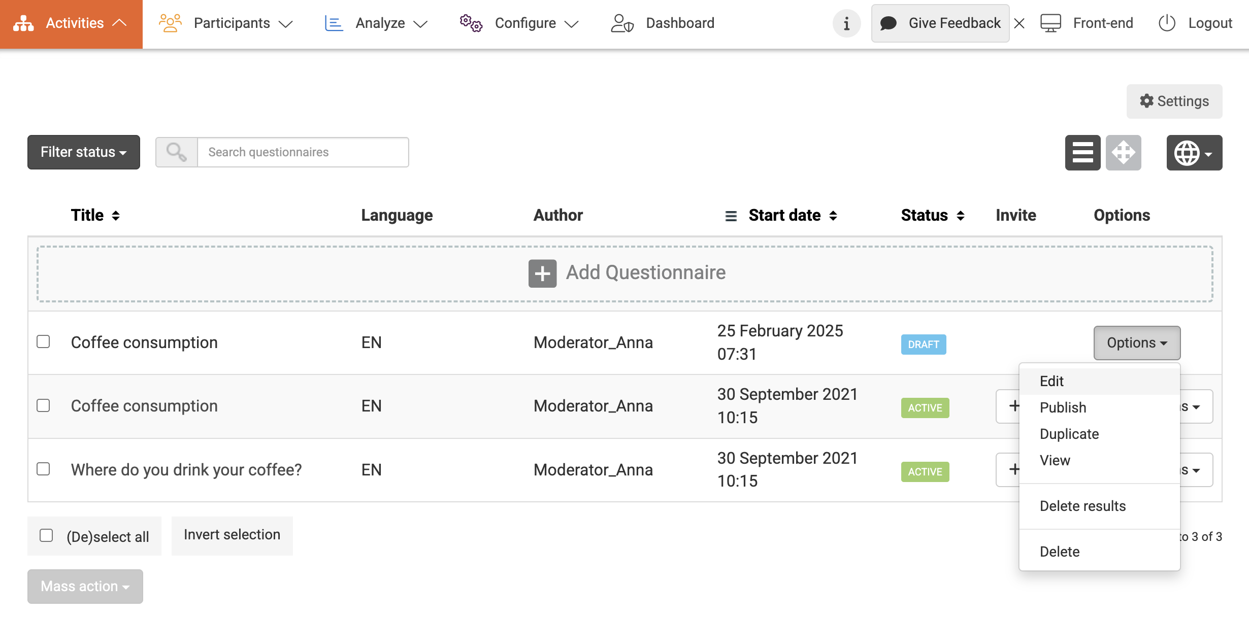 - Click Edit at the Options dropdown menu or three dots next to the Options button.