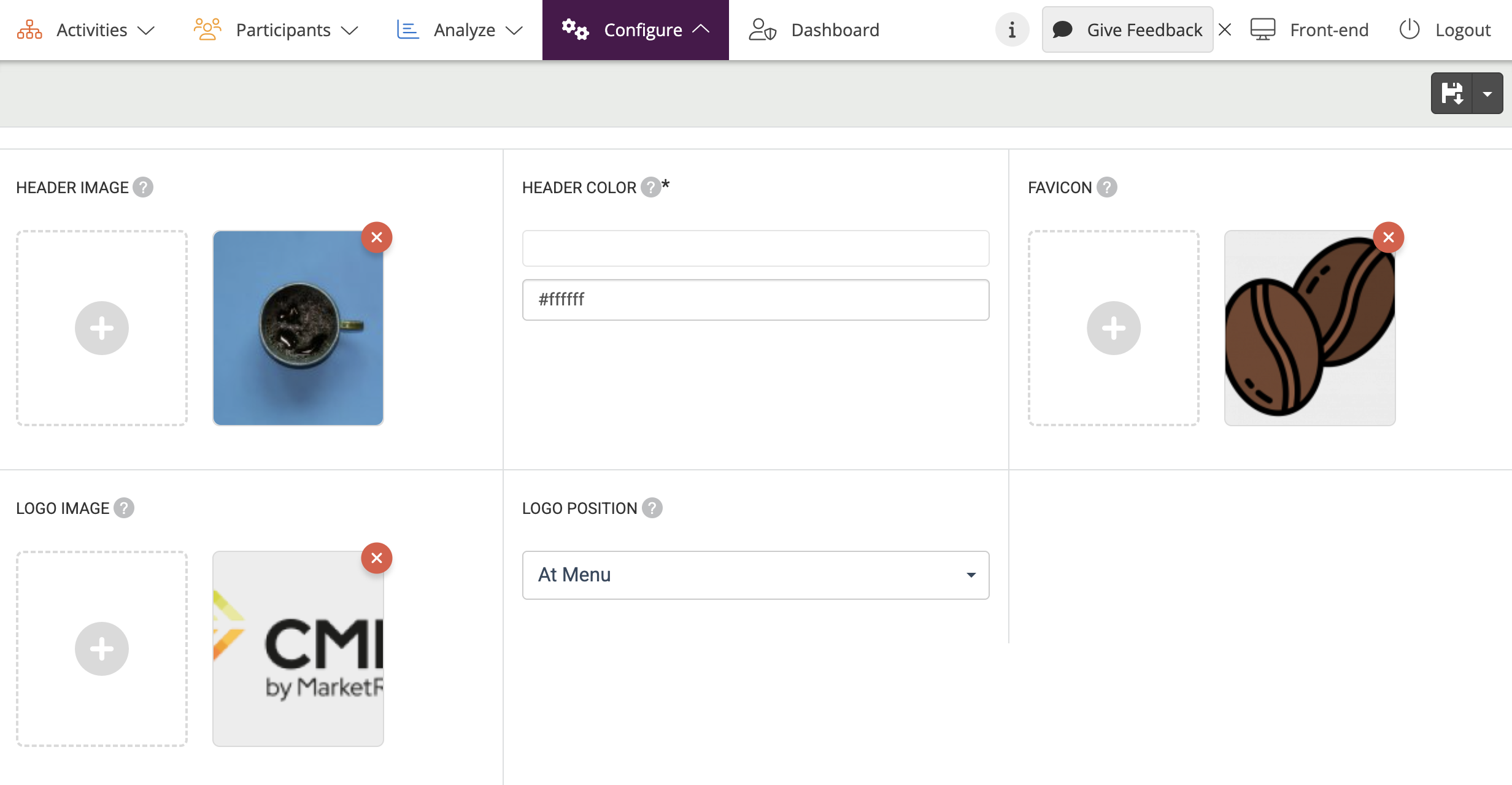 - Add your own Header Image, Logo Image, and Favicon. If you don’t want to use a header image you can also choose a Header Color to be displayed as a header image.