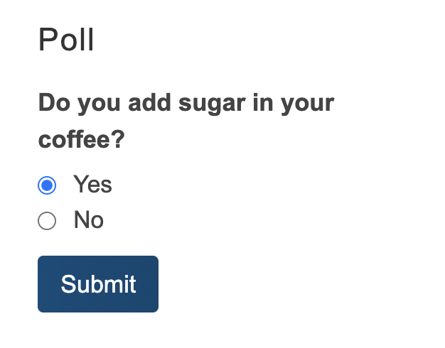 The poll widget allows you to get fast answers from your participants. You can create multiple polls and schedule them to start and end at different times. If you do not schedule your polls, they will be displayed one after another to the participants, starting with the first and ending with the last one created. You can also assign polls to different user groups.