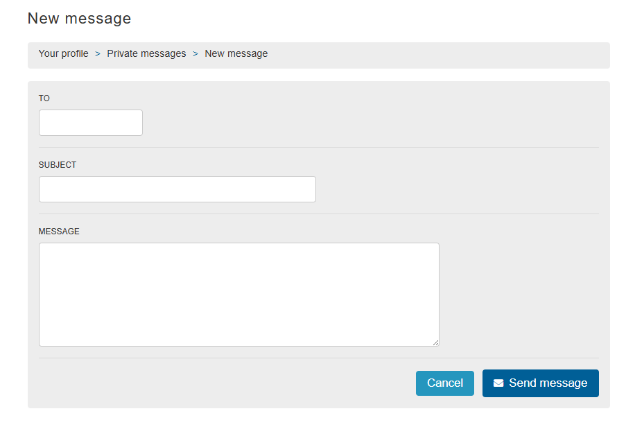 Private messaging is a function of the platform that enables you to send users a private message. A private message is a message that only the sender and receiver can see. You can send a message to multiple users. This message will not arrive in the email inbox of the user, but rather in the private message inbox of the user in the platform. Both normal users and community managers can use this function.