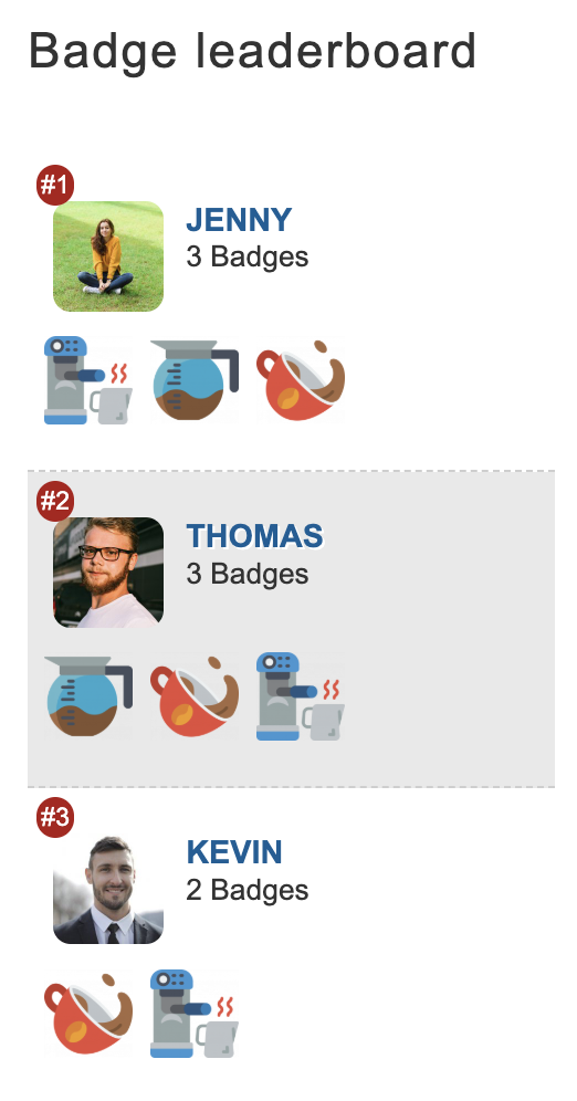 The Badge Leaderboard widget shows the users who have earned the most Badges. With this widget, you’re able to see who has earned most badges, in one glance. So users can keep track of themselves and others easily.