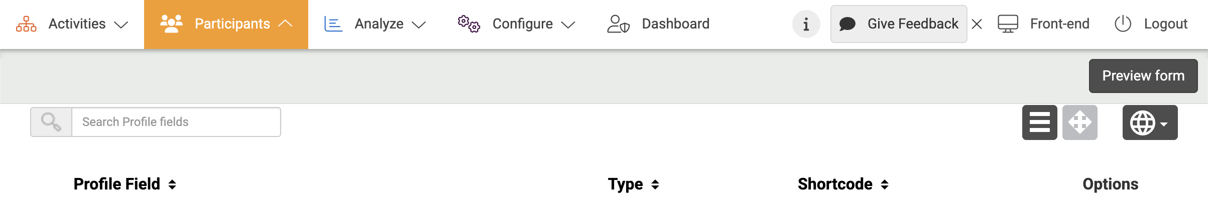 Previewing your form You can preview your registration form by following in the upper right corner of the profile fields page: