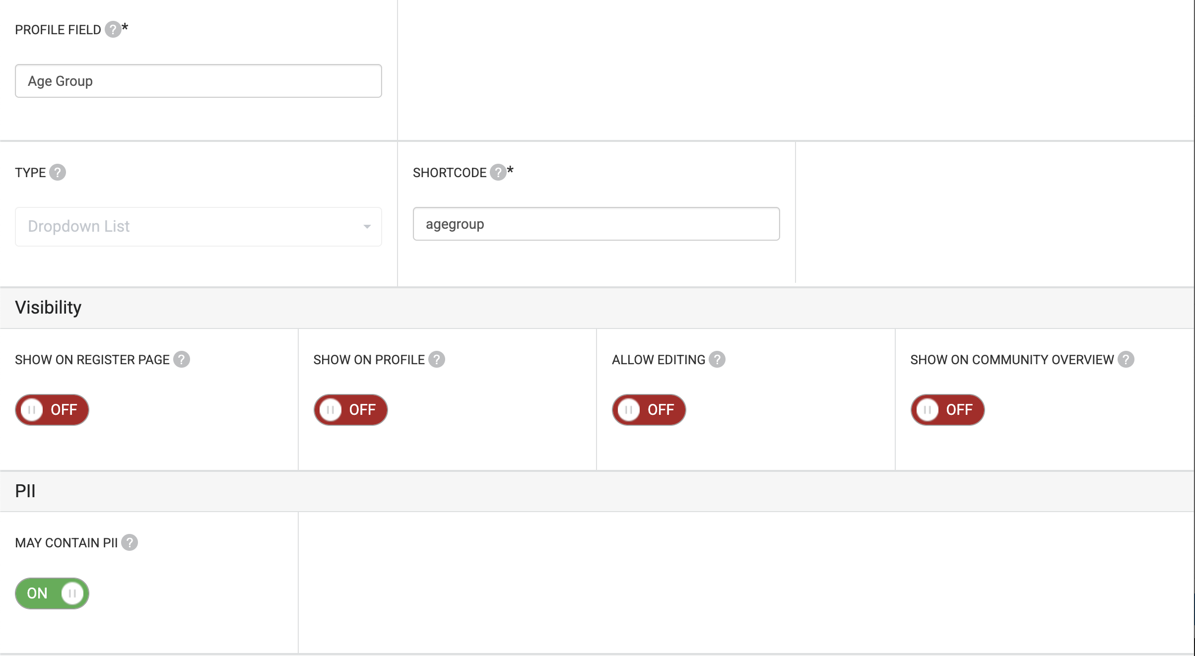 - Underneath Visibility, switch the Show Register On Page button to include the profile field on your registration form.